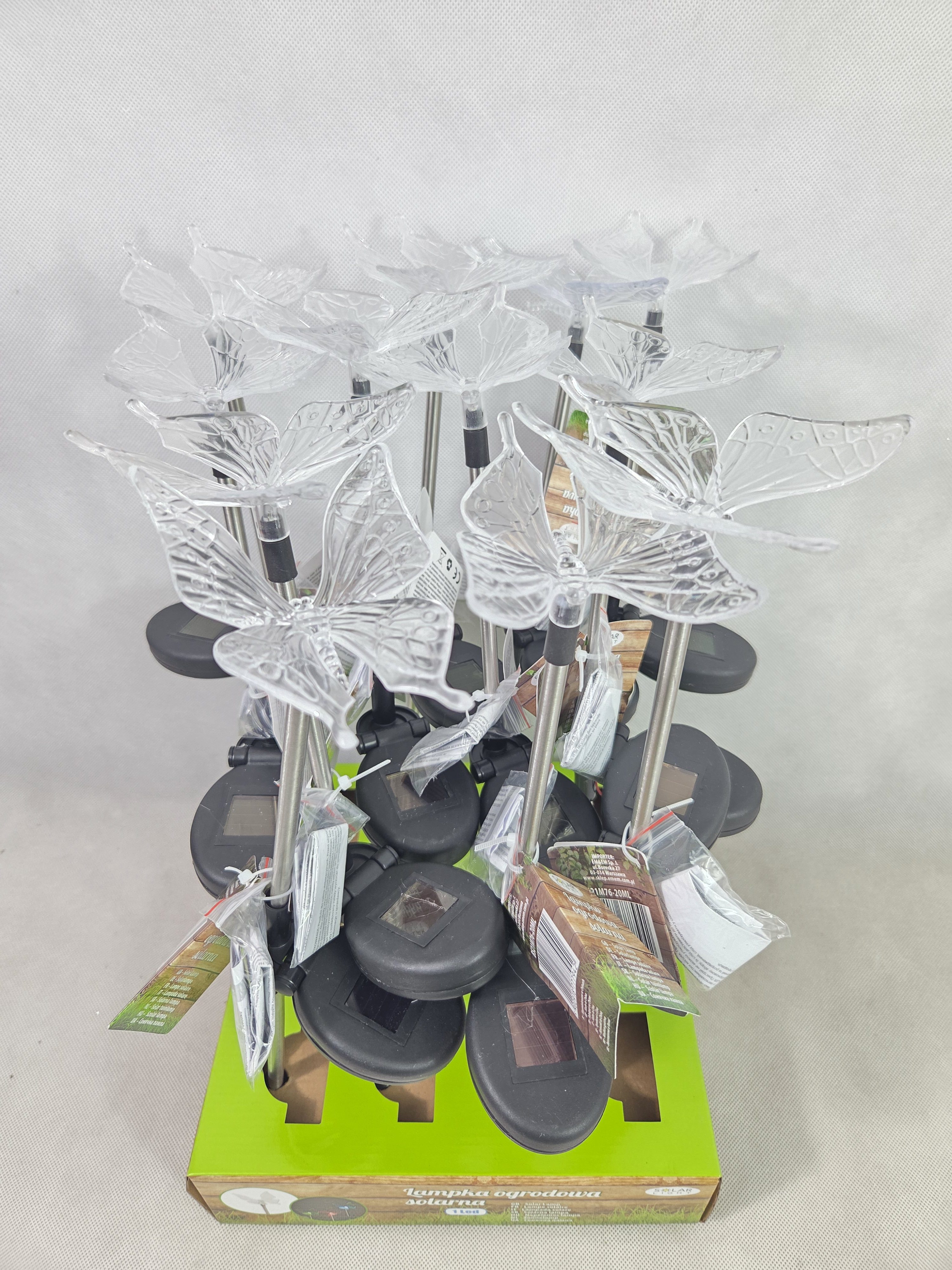 Lampka solarna motyl o wysokości 42 cm. Światło multikolor. pak. 12