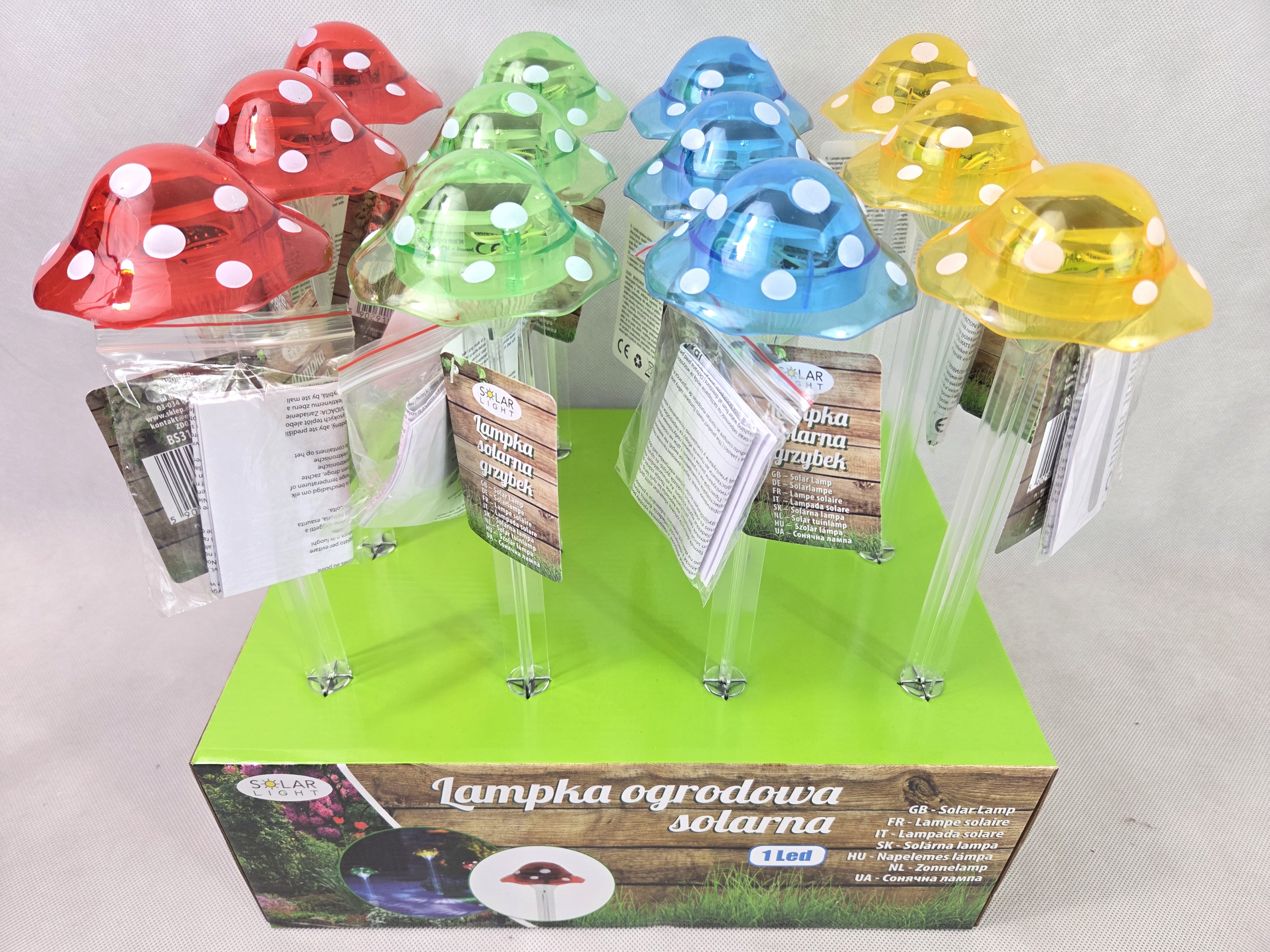 Lampka solarna grzybek LED o wymiarach 8,8×8,8×33 cm. mix kolorów.  pak. 12