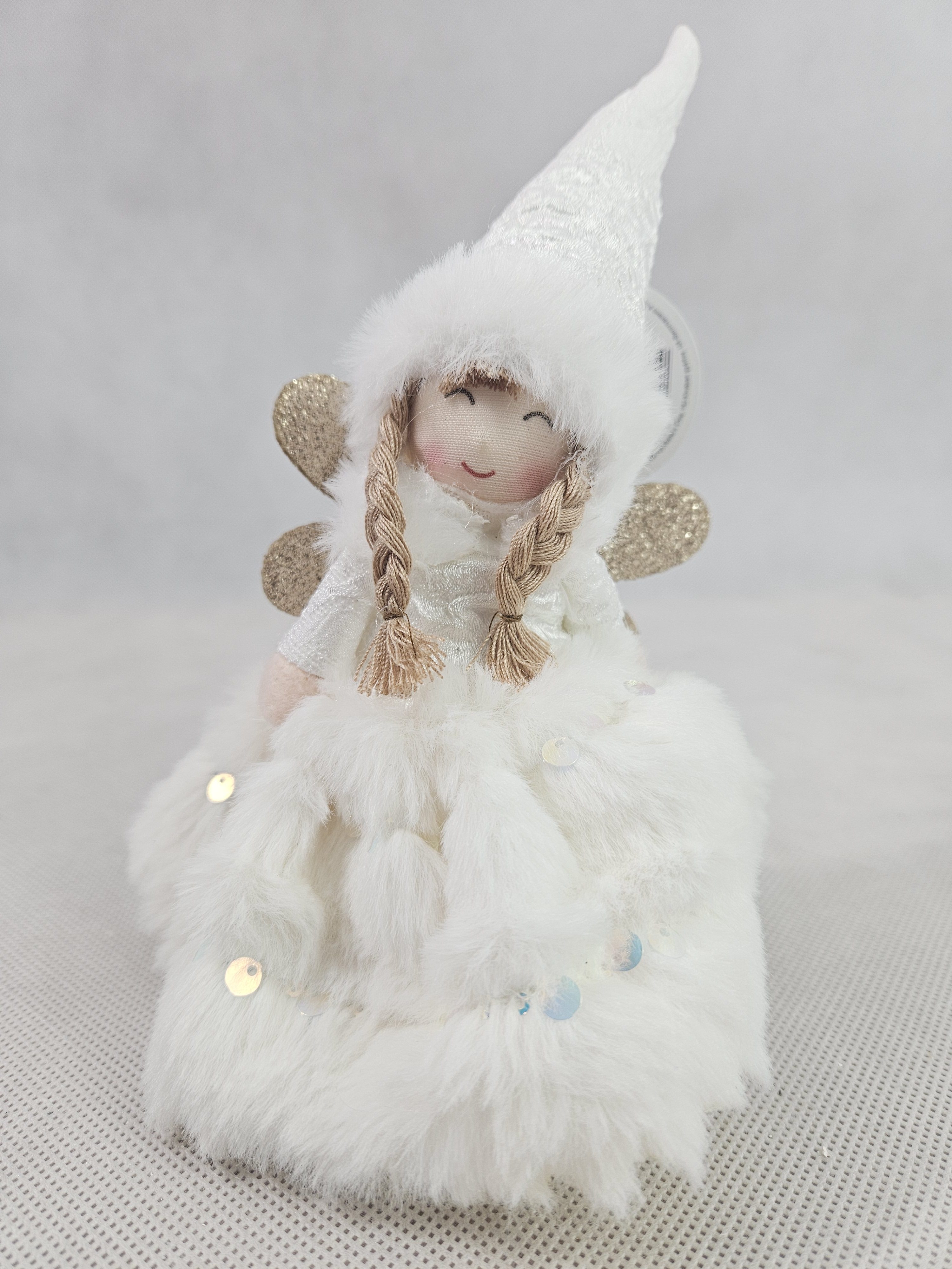 Figura tekstylna. Wróżka siedząca o wysokości 20 cm . Tylko kolor biały. pak. 24/luz