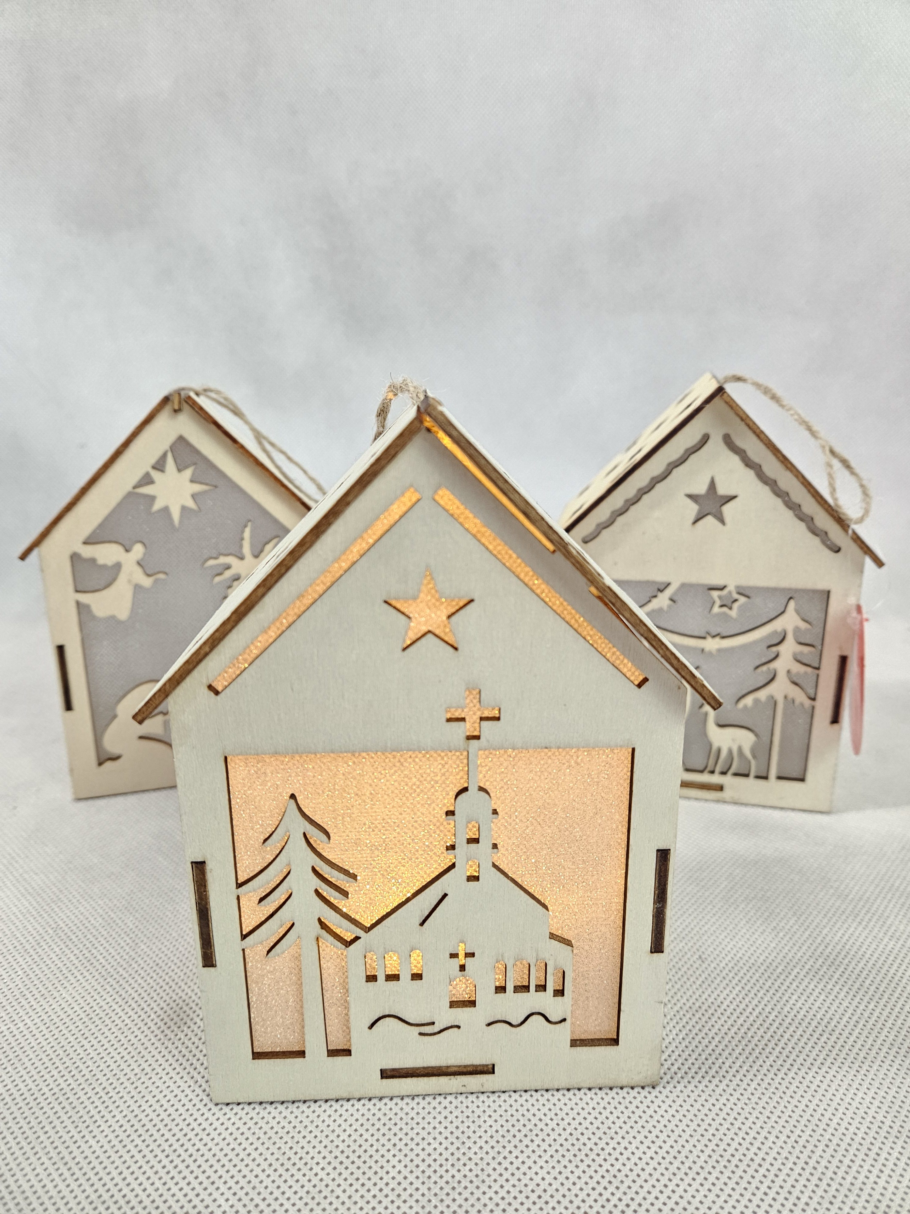 Latarenka drewniana z LED o wymiarach 11x8x15 cm. mix domków. pak. 8