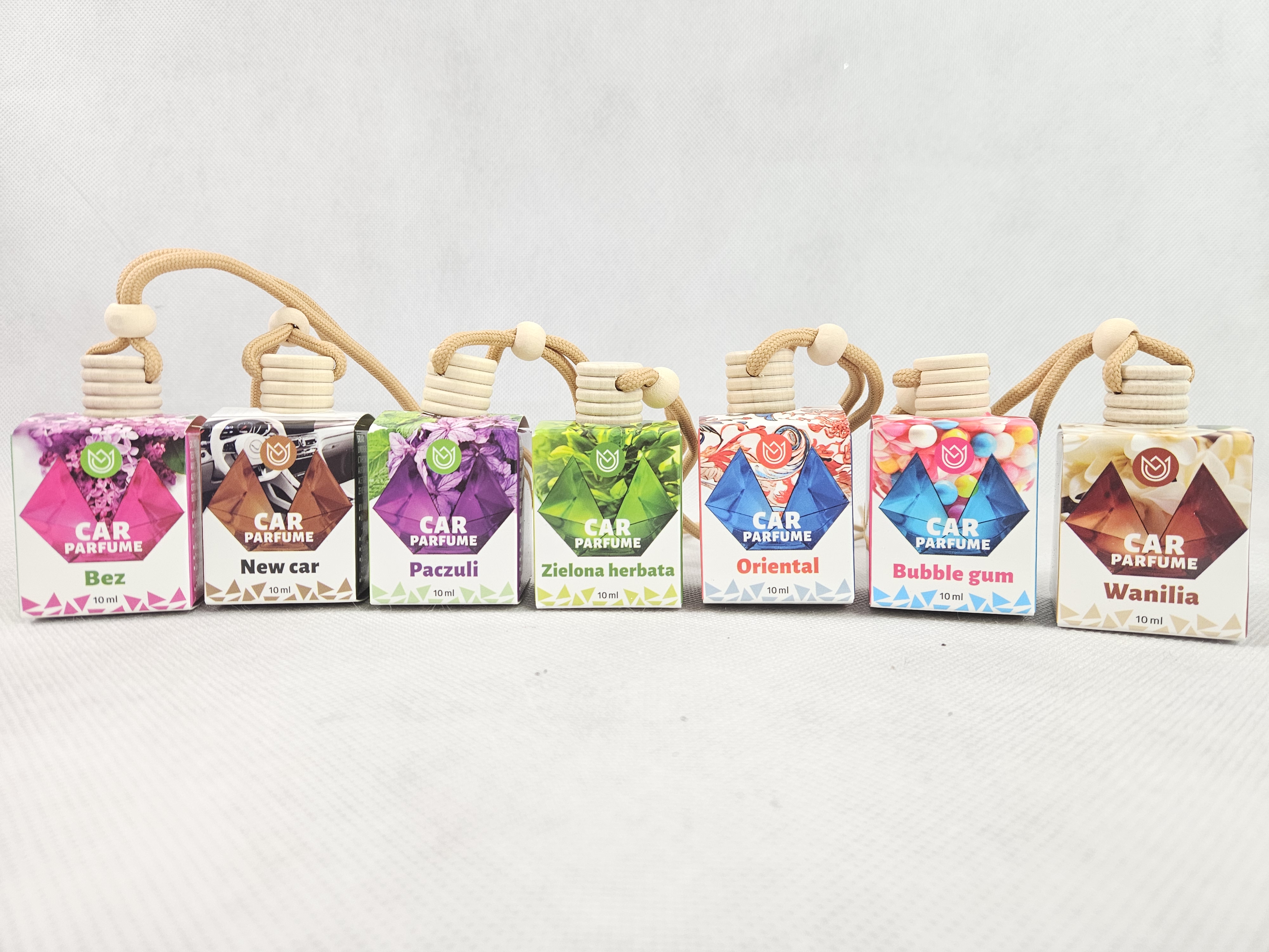 Przywieszki samochodowe o pojemności 10 ml z zawieszką. mix zapachów. pak. 24/luz