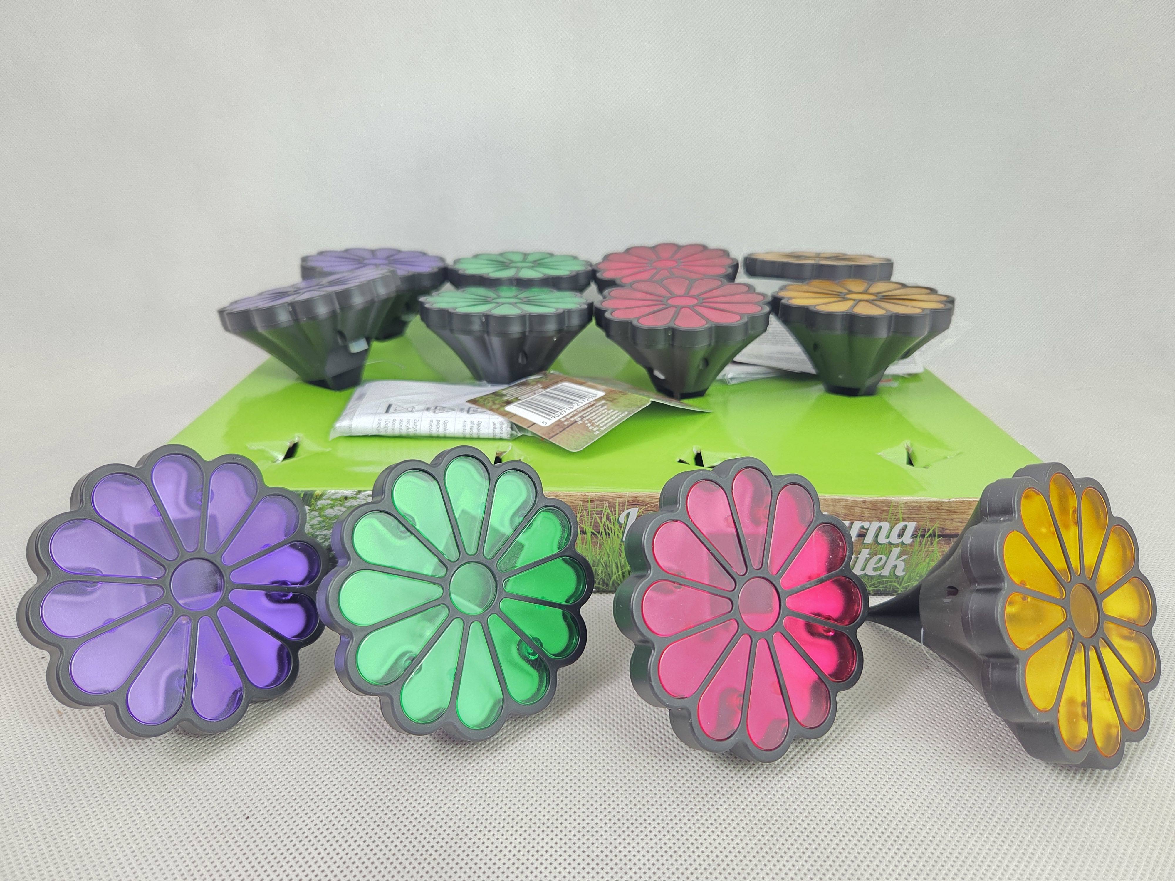 Lampka solarna Kwiatek 1 LED o wymiarach 9,5×9,5×9 cm. mix kolorów. pak. 12