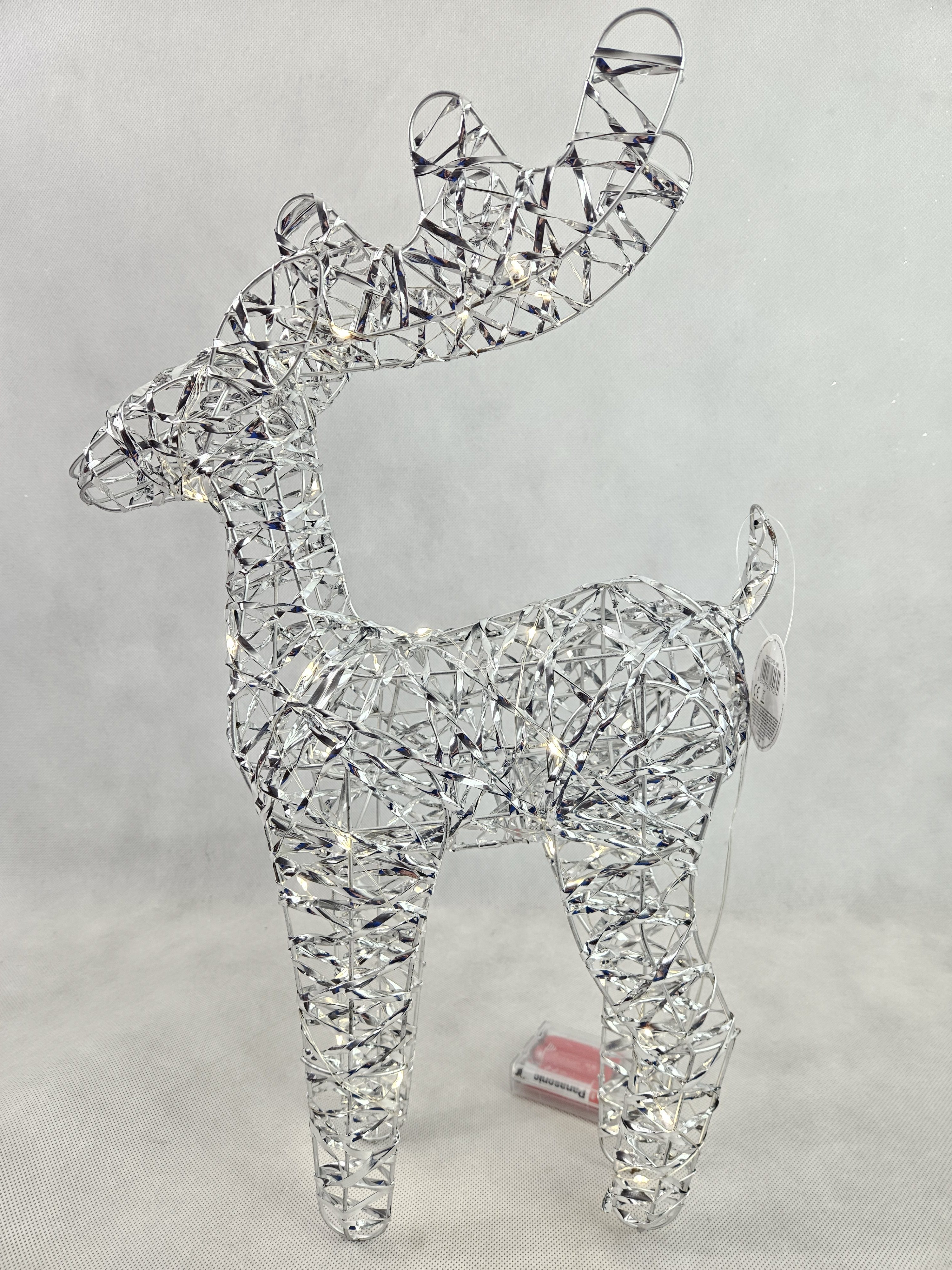 Dekoracja 40LED renifer srebrny 27x13x50 cm. pak. 12/luz