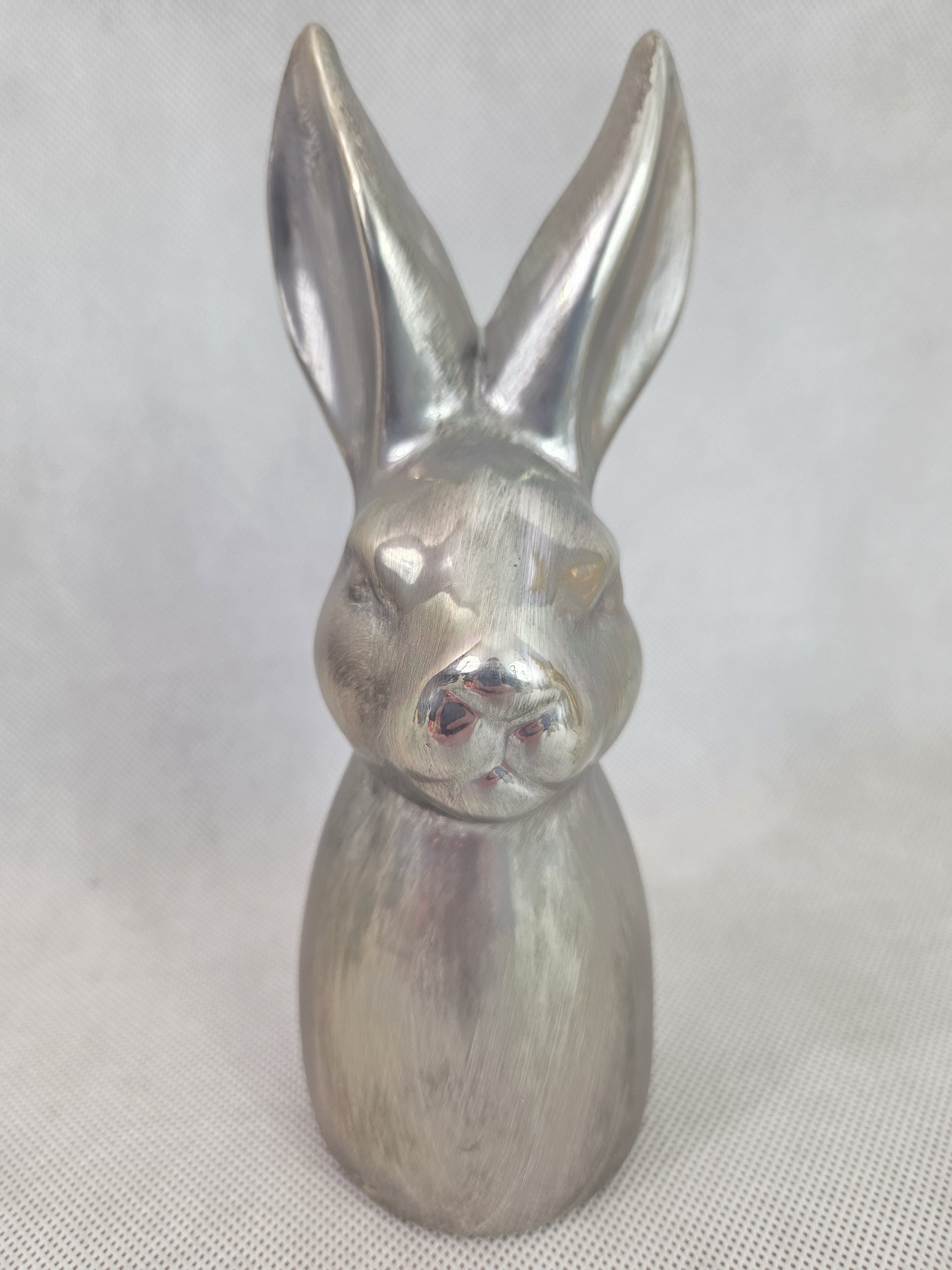 Figurka ceramiczna w kształcie królika o wymiarach  8×7,2×20 cm. Tylko kolor srebrny. pak. 12/luz